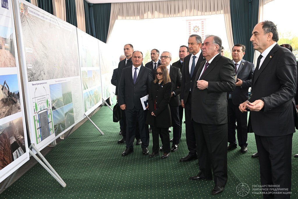 Also, the President of the Republic of Tajikistan got acquainted with the project of construction of Danghara-Guliston and Guliston-Farkhor highways and started the construction works.