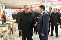 Here, the Head of State Emomali Rahmon was shown a sample of manufactured products.