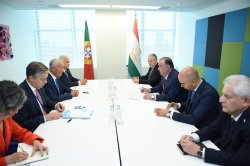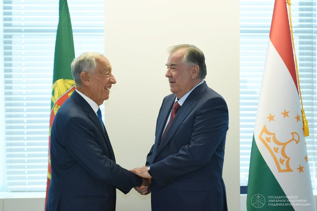 22 сентября Президент Республики Таджикистан, Лидер нации, уважаемый Эмомали Рахмон, в Нью-Йорке в рамках дебатов 80-й сессии Генеральной Ассамблеи Организации Объединённых Наций встретился с Президентом Португальской Республики, уважаемым Марселу Ребелу де Соуза.