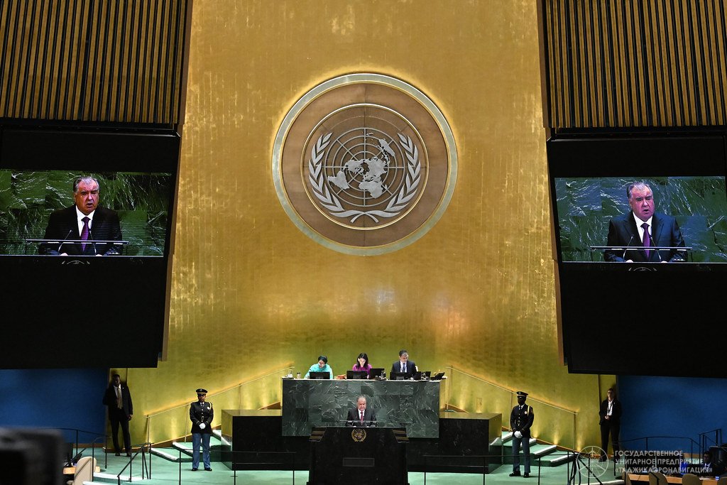В начале своего выступления Президент нашей страны уважаемый Эмомали Рахмон искренне поздравил глав стран-членов Организации с 80-й годовщиной принятия Устава ООН.