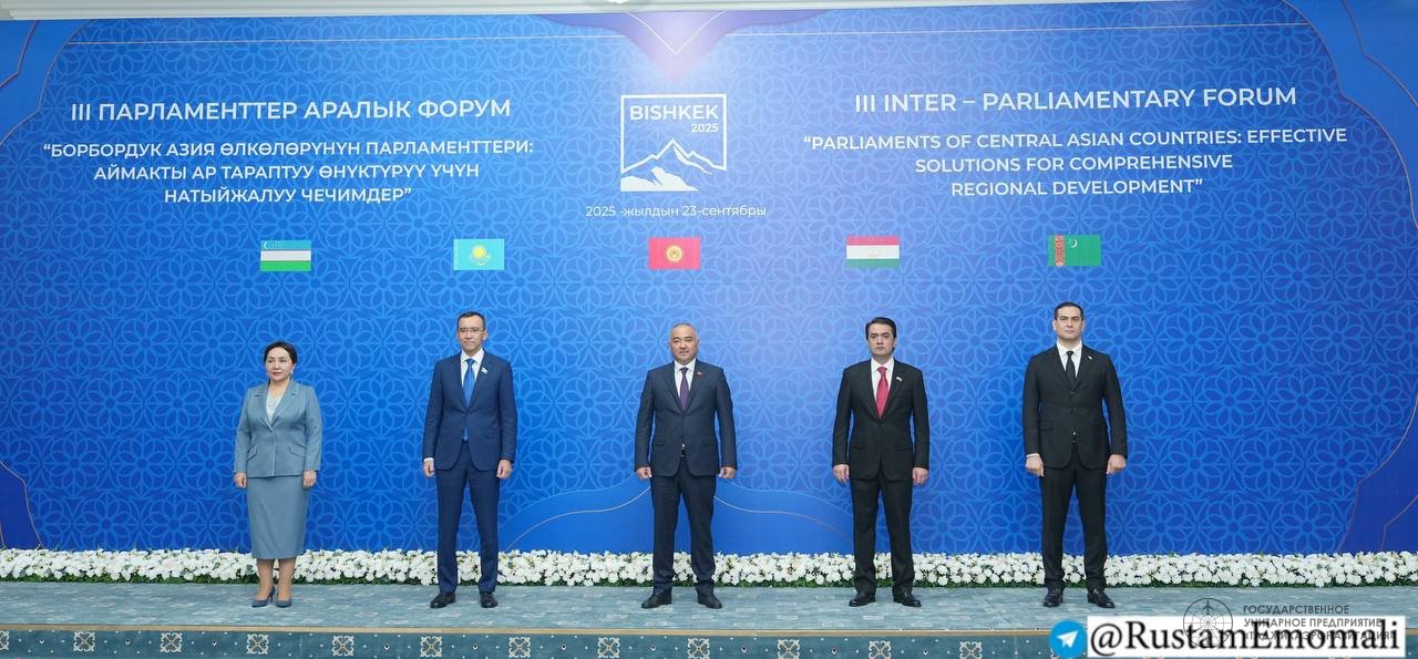 23 сентября 2025 года в Бишкеке Председатель Маджлиси милли Маджлиси Оли Республики Таджикистан, председатель города Душанбе уважаемый Рустами Эмомали принял участие и выступил на Третьем Межпарламентском форуме стран Центральной Азии. Об этом сообщает НИАТ «Ховар» со ссылкой на Маджлиси милли Маджлиси Оли Республики Таджикистан.