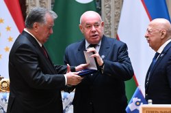 Здесь же, по завершению подписания документов Сопредседатель Правления Межгосударственного фонда гуманитарного сотрудничества (МФГС) государств - участников СНГ, член Совета по гуманитарному сотрудничеству СНГ, Специальный представитель Президента Российской Федерации по международному гуманитарному сотрудничеству Михаил Швыдкой огласил решение Правления Межгосударственного фонда гуманитарного сотрудничества государств – участников СНГ о награждении Председателя Совета глав государств Содружества Независимых Государств, Президента Республики Таджикистан, уважаемого Эмомали Рахмона медалью «За заслуги в развитии гуманитарного сотрудничества».