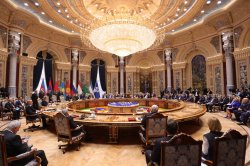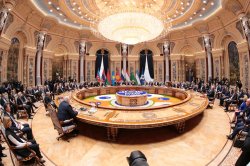 После прибытия участников заседания состоялась церемония совместного фотографирования глав государств.
