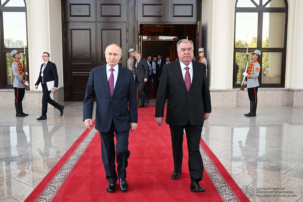 Президенти Ҷумҳурии Тоҷикистон, Пешвои миллат муҳтарам Эмомалӣ Раҳмон Президенти Федератсияи Русия муҳтарам Владимир Путинро самимона истиқбол гирифта, ба болои шоҳсуфаи фахрӣ даъват карданд.