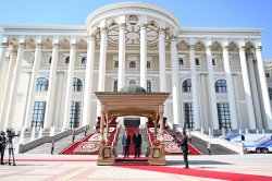 9 октябр маросими бошукуҳи истиқболи Президенти Федератсияи Русия муҳтарам Владимир Путин дар майдони Қасри миллат, ки ба хотири сафари давлатии меҳмони воломақом ороста шуда буд, баргузор гардид.