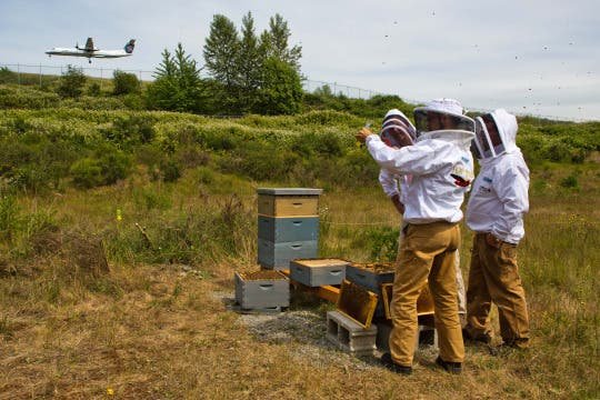 Дар шарқи роҳи парвозу фуруд рақами 2, ду қуттии бузурги занбӯри асал, ки аз назари мусофирон пинҳон мебошанд, ҷой гирифтаанд ва ҳар яке тақрибан 50 000 занбӯрро дар бар мегирад. Ин ҷомеаи хурди зинда на танҳо ба истеҳсоли асал мусоидат мекунад, балки дар ҳифз ва рушди саломатии экосистемаи маҳаллӣ низ нақши муҳим дорад.