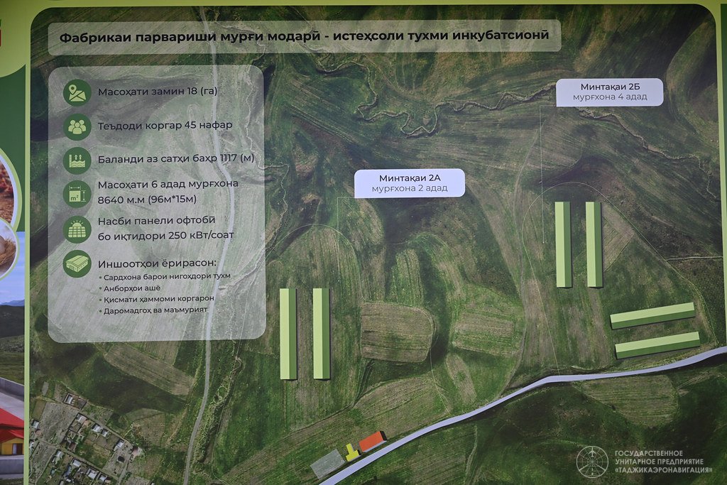 Ҳудуди заминҳое, ки ин иншоот дар он сохта мешавад, зиёда аз 36 гектарро ташкил дода, дар умум 23 фермаи иловагии парвариши паранда бо биноҳои маъмурӣ, санитарӣ, анборҳо, гузаргоҳҳо ва таваққуфгоҳҳои техника бунёд меёбад. Кашидани хатти барқ дар масоҳати беш аз 10 км ҳам пешбинӣ шудааст.