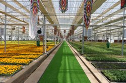 Маҷмааи гармхонаҳо дар масоҳати 10 гектар замини бекорхобида ташкил карда шуда, 6 гектари он барои бунёди гармхонаҳои муосир пешбинӣ гардидааст. То имрӯз 3 гектар пурра обод шуда, мавриди истифода қарор гирифтааст, ки дар 1 гектари он гули садбарг ва дар 2 гектар гулҳои гуногуни мавсимӣ бо истифода аз усулҳои муосири агротехникӣ парвариш меёбанд.